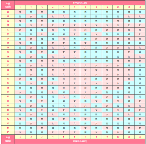 在縱軸找到母親虛歲,橫軸找到受孕農歷月份,交點即為圖表提示。建議將結果視為 趣味參考 ,不必執(zhí)著于唯一答案。